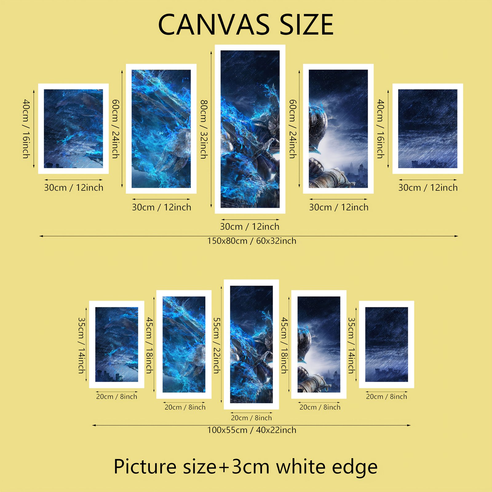 5pcs Set of Elegant Pathfinder: Dark Fantasy Game Canvas Art Posters, Perfect for Decorating Living Room, Office, Bedroom, or Cafe Wall Art, Frameless Artwork Wall Decor, Indoor Use, Vertical Orientation, Office Artwork | Mystical Theme | Vibrant Colors, Art Wall Decor