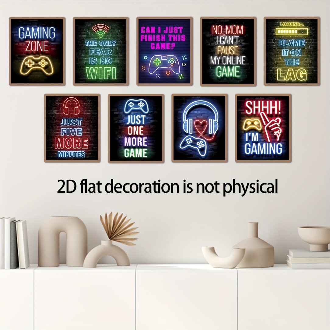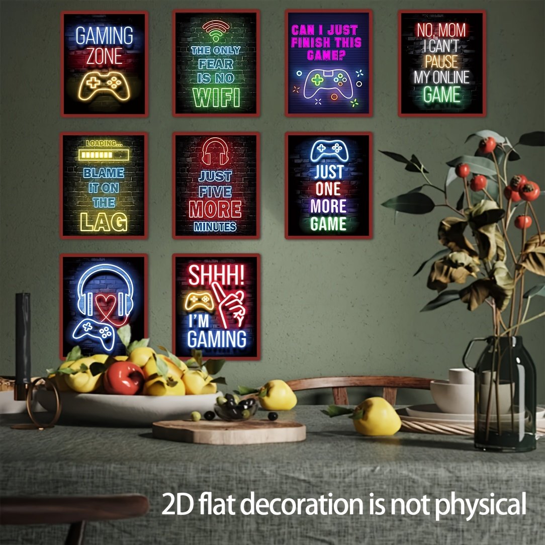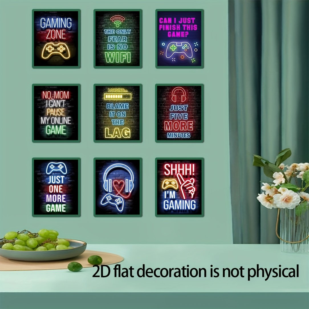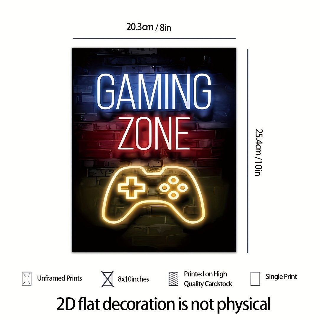 Gaming Room Decor Wall Art, Modern Neon Gaming Decor for Living Room, Bedroom, Office, Bar Game Room Decor, No Frame, 20.32 X 25.4 cm, 2D Flat, Perfect for Room Decor.