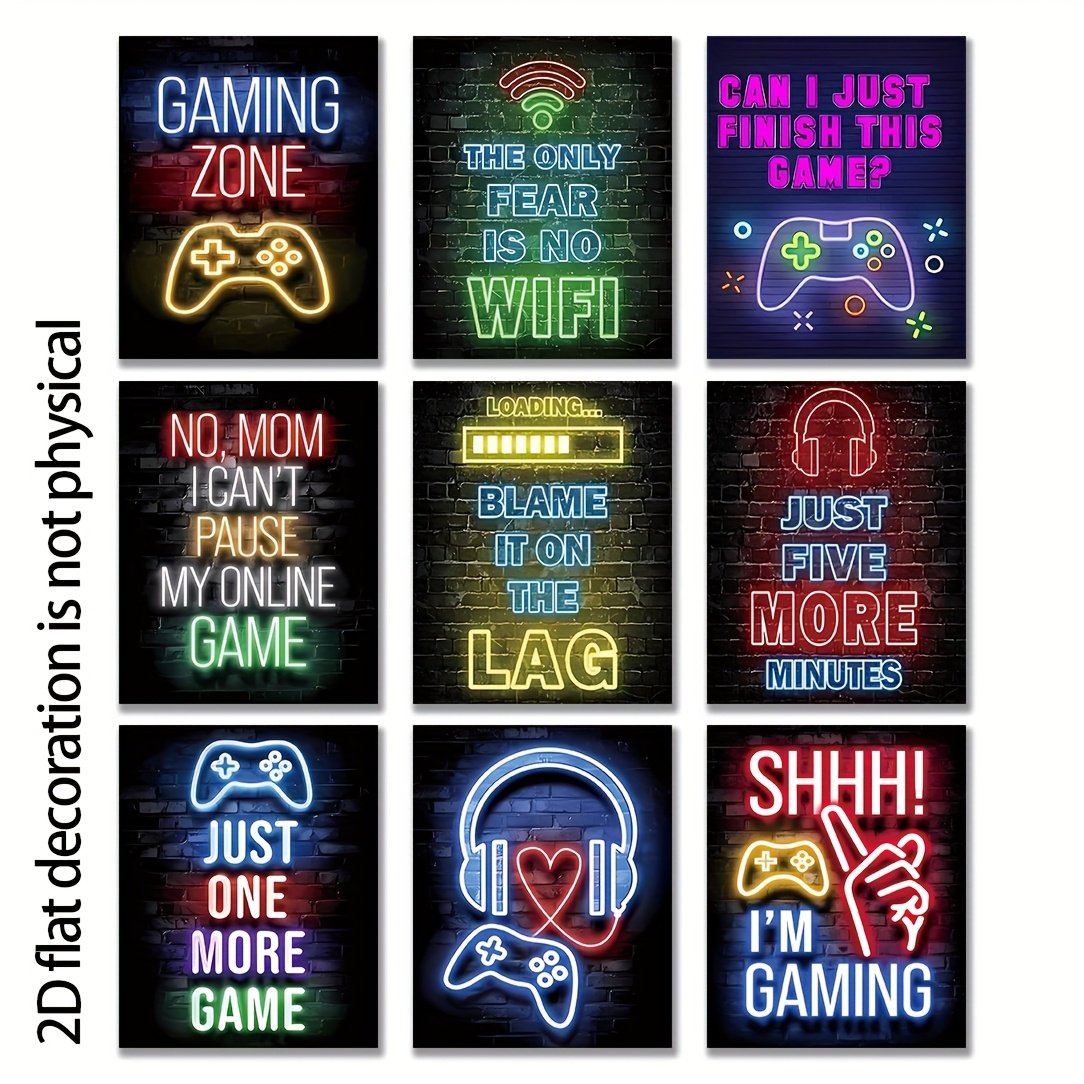 Framless Neon Gamer Quotes Posters (9PCS)
