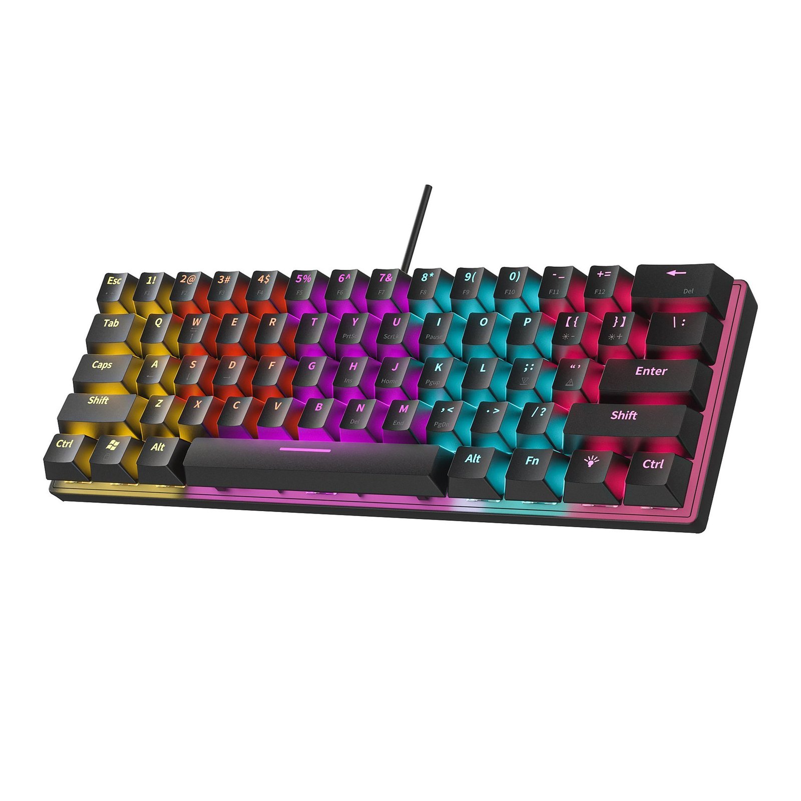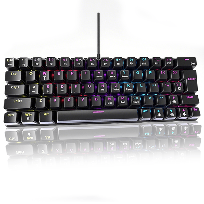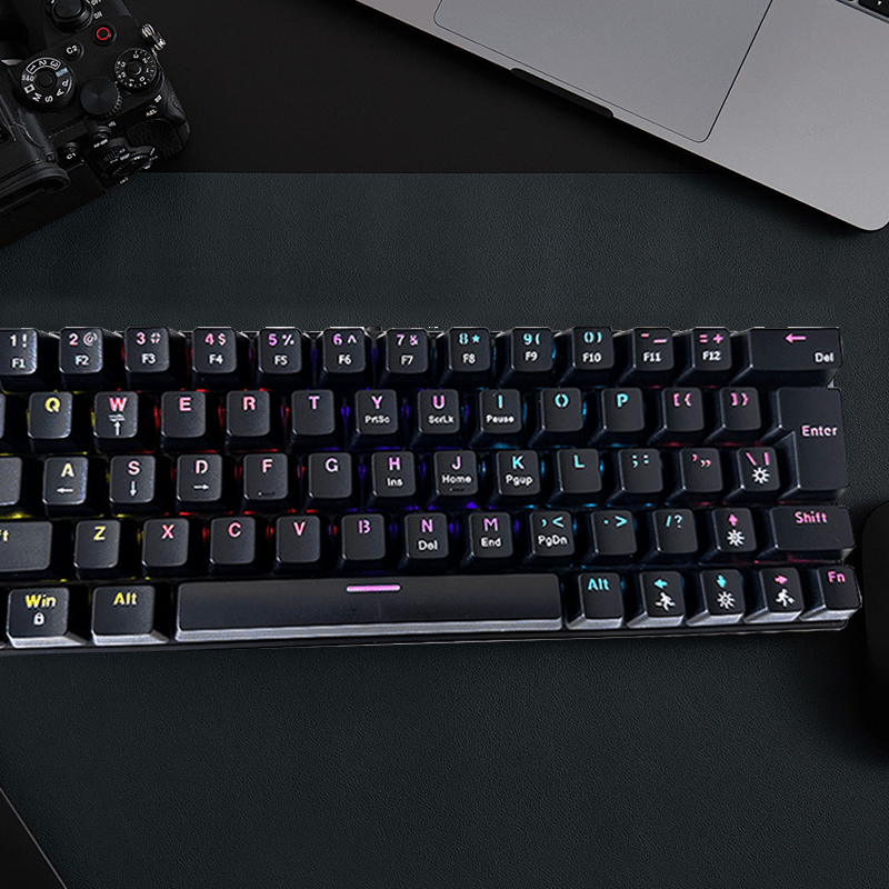 Mechanical Keyboard, Gaming, Office, Mini Portable Color Backlit Keyboard, USB Cable, 61 Keys, 12 Light Effects