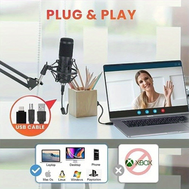 Upgrade your audio setup with this all-in-one USB microphone kit — perfect for podcasting, meetings, gaming, streaming and content creation. It includes everything you need to start recording professionally right out of the box, with no extra accessories required.